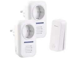 CASAcontrol Funk Türklingel:2 Steckdosen-Funkklingeln & Kinetischer Funk-Taster; 230-V-Steckdose
