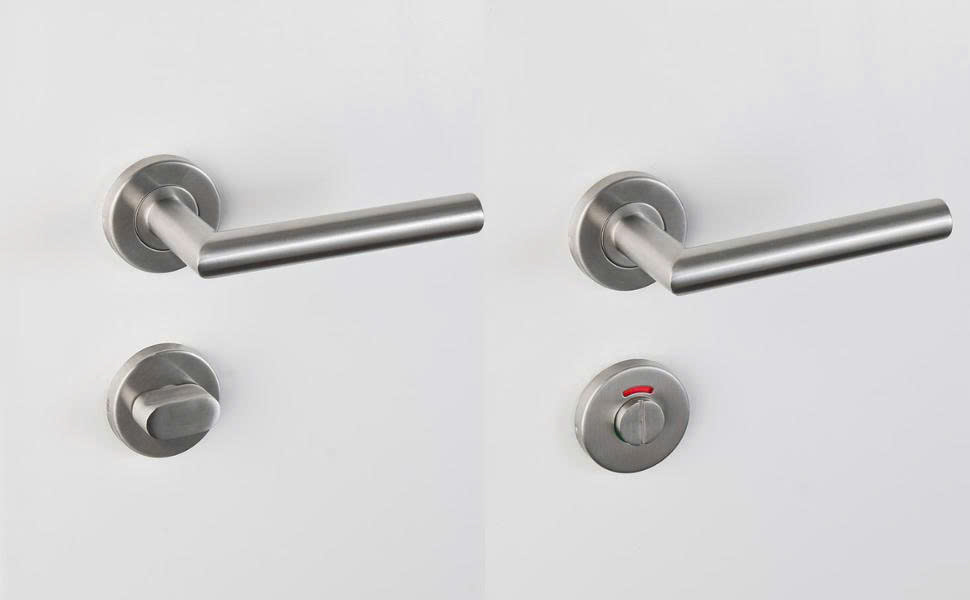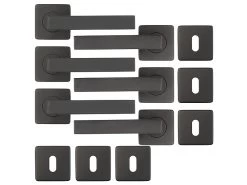 AGT Türklinken Edelstahl:3er-Set Edelstahl-Türbeschläge, Je 2 Klinken & Rosetten, Eckig Schwarz