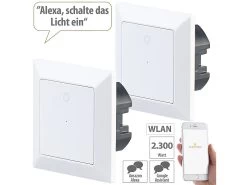 Luminea Home Control Dimmer-Schalter LED:4er-Set WLAN-Unterputz-2-Kanal-Lichtschalter & -Dimmer, App