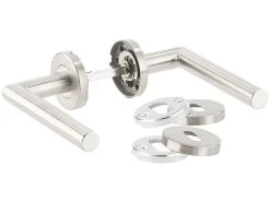 AGT Türbeschläge WCs:2er-Set Edelstahl-Türbeschlag Für Bad & WC, 4 Klinken & Rosetten, Rund