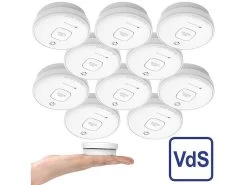 VisorTech Vernetzte Rauchmelder:10er-Set Vernetzbare Funk-Rauchmelder, 85 DB, VdS, 10-J.-Batterie