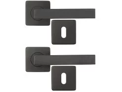AGT Türklinke Edelstahl:2er-Set Edelstahl-Türbeschlag Mit 2 Klinken & Rosetten, Eckig, Schwarz