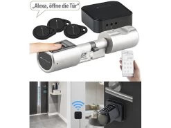 VisorTech Schloss:Elektronischer Tür-Schließzylinder, Transponder, App, IP65, M Gateway