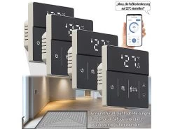 Revolt Heizung Thermostat WLAN:4er-Set WLAN-Fußbodenheizung-Thermostate Mit App, Schwarz