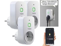 Luminea Home Control 3er-Set WLAN-Steckdosen Mit Energiekostenmesser, App & Sprachsteuerung