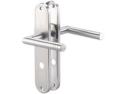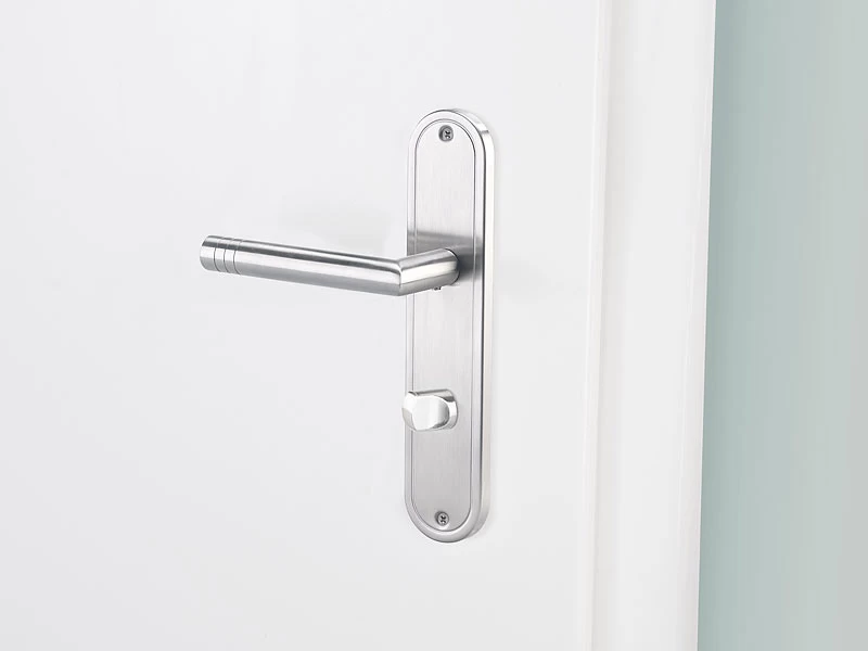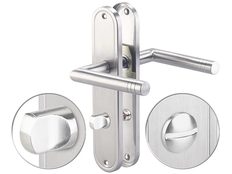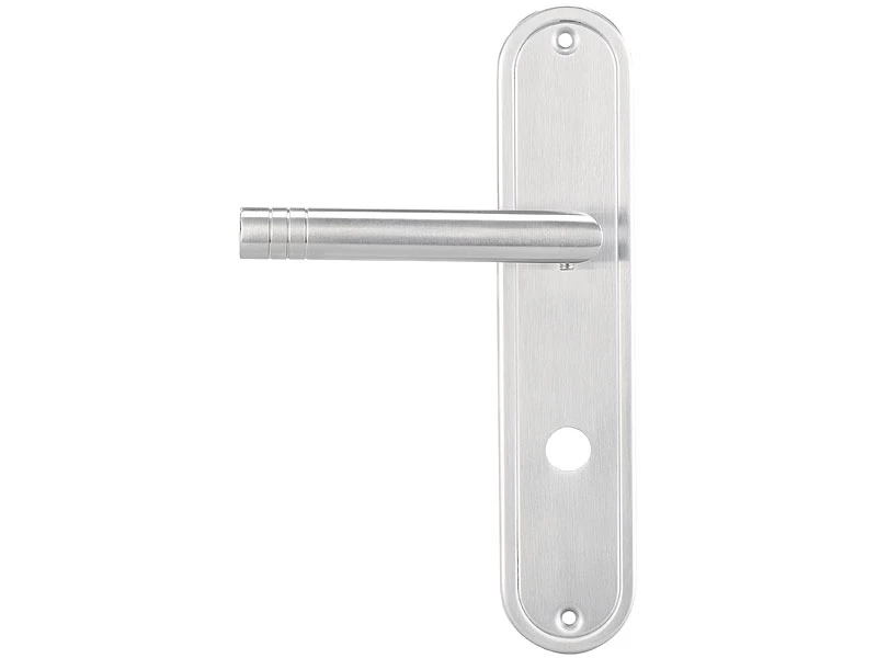 Verpassen Sie Ihrer Bad- oder WC-Tür den letzten Schliff: Der moderne Edelstahl-Türbeschlag macht überall eine gute Figur, egal ob Sie ihn in einer neuen oder renovierten Tür einsetzen.