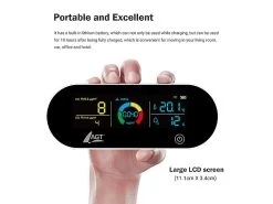 - Farb-Display mit Ampelsystem zur Anzeige der Luftqualität: grünes Licht = gut, blaues Licht = mittelmäßig, gelbes Licht = ungesund, rotes Licht = sehr ungesund