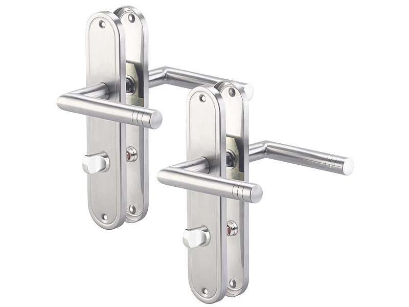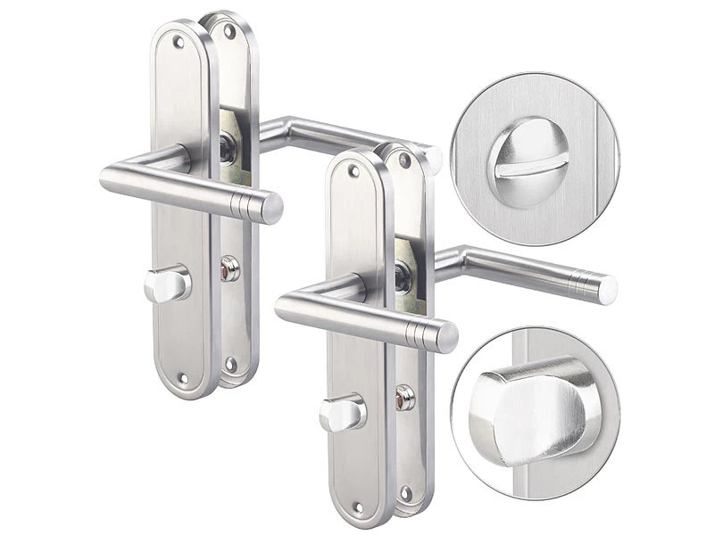 - Der Set beinhaltet 2 Türklinken inklusive 2 Langschild-Rosetten, Riegel, Vierkant-Stift, Montage-Material und deutscher Anleitung – WC-Türklinken – Außerdem relevant oder passend zu: Schlösser, Türschloss