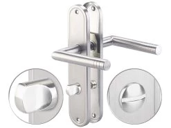 Verpassen Sie Ihrer Bad- oder WC-Tür den letzten Schliff: Die modernen Edelstahl-Türbeschläge machen überall eine gute Figur, egal ob Sie diese in einer neuen oder renovierten Tür einsetzen.