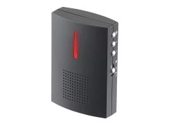 - Maße Türklingel: 90 x 36 x 18 mm, Gewicht: 34 g, Basisstation: 70 x 100 x 30 mm, Gewicht: 76 g (ohne Batterien)