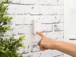 Einfach und flexibel einrichten: Montieren Sie den Taster an Eingangs-Tür, Hintereingang & Co. Stellen Sie die batteriebetriebene Klingel einfach dort auf, wo Sie sie in Hör- und Sichtweite haben – in bis zu 150 Metern Entfernung. Fertig!