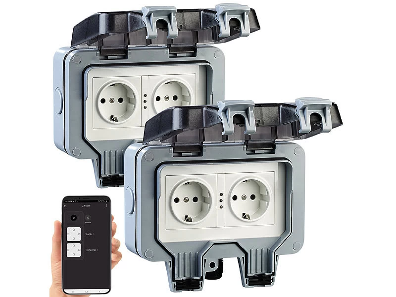 - 2 Outdoor-WLAN-Aufputz-Doppelsteckdosen SF-530.avs inklusive Montagematerial und deutscher Anleitung – WLAN Steckdose Zeitschaltuhr – Außerdem relevant oder passend zu: Tablet, Weihnachten