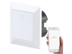 Steuern Sie Ihr Licht auch per Smartphone und Tablet-PC: Ersetzen Sie einfach Ihren klassischen Lichtschalter, z.B. im Wohn- oder Schlafzimmer. Schon schalten Sie das Licht per Taster oder mit wenigen Klicks in der kostenlosen App mit Ihrem Mobilgerät ein und aus – bequem vom Sofa oder aus dem Bett.