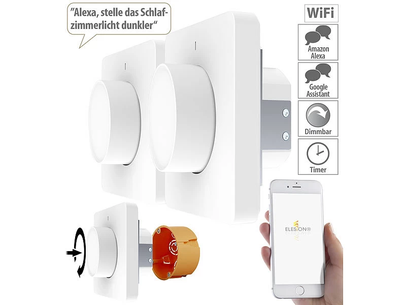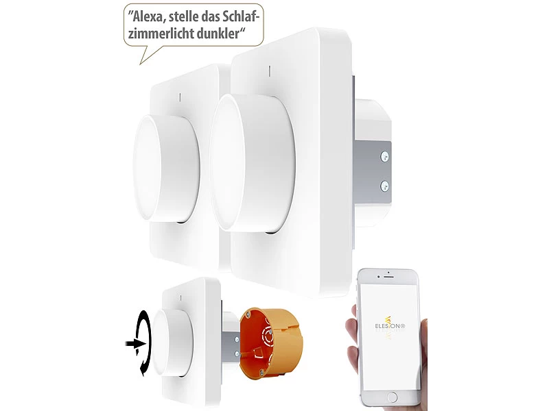 - WLAN-Lichtschalter & Dimmer LHC-201.dimm mit Dreh-/Drück-Funktion und App