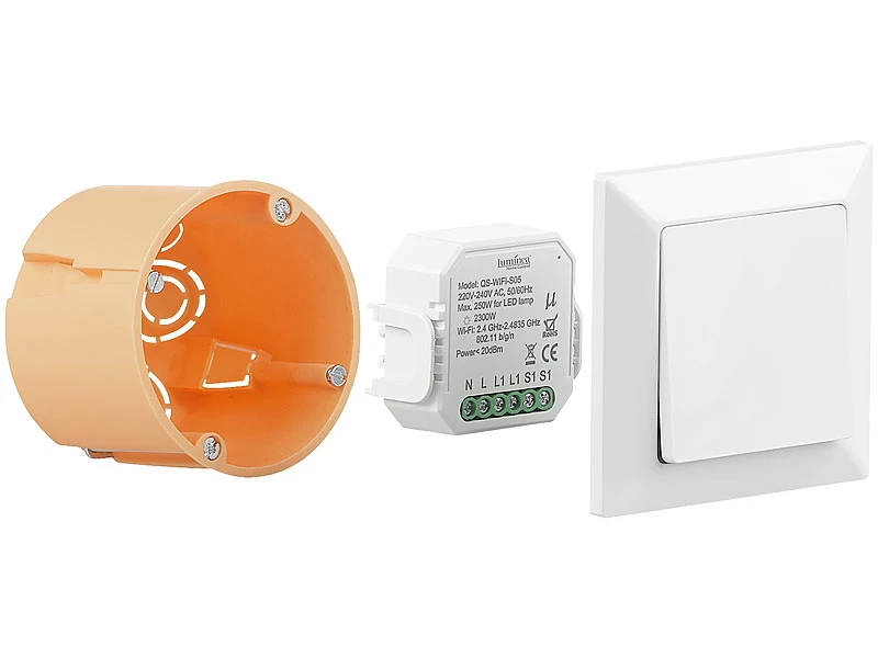 - 2 Funk-Empfänger jeweils inklusive Halterung und deutscher Anleitung – WLAN-Unterputz-Wechselschalter – Außerdem relevant oder passend zu: TUYA, Relais, Lüfter, Smart Home, Funkschalter, Klatschschalter, Deckenventilator