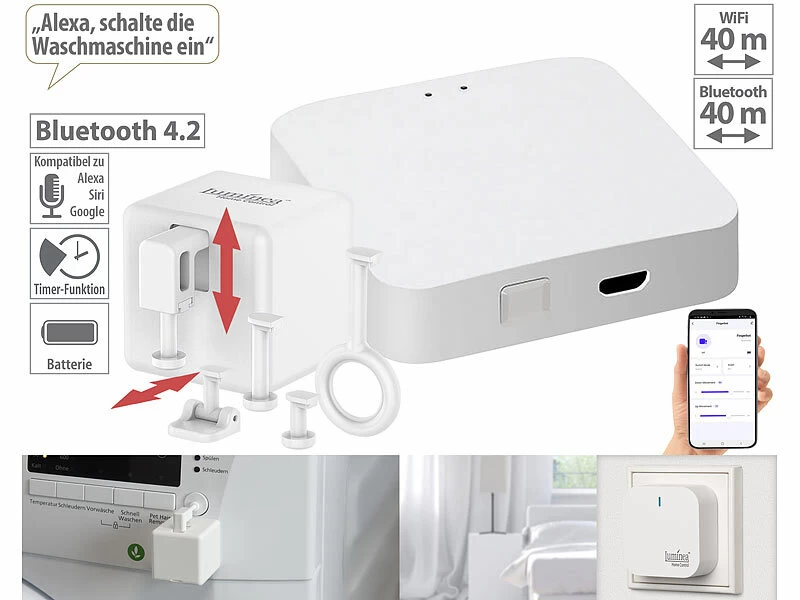 - Gateway zum Einbinden von kompatiblen Bluetooth-Geräten in Ihr WLAN: einfach in die Steckdose stecken und per App konfigurieren