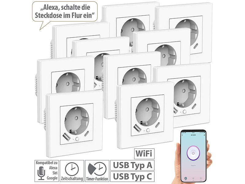 - 10er-Set Steckdosen inklusive Montagematerial und deutscher Anleitung – Schutzkontakt-Steckdose – Außerdem relevant oder passend zu: Netzteil, Ladekabel