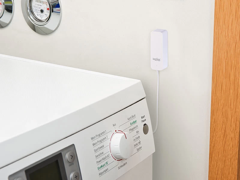 Warnt Sie zuverlässig bei austretendem Wasser z.B. bei Rohrbruch, Schlauchschäden und undichten Stellen an Spülmaschine, Waschmaschine oder Ihrer Heizung. So beugen Sie schlimmeren Schäden vor.