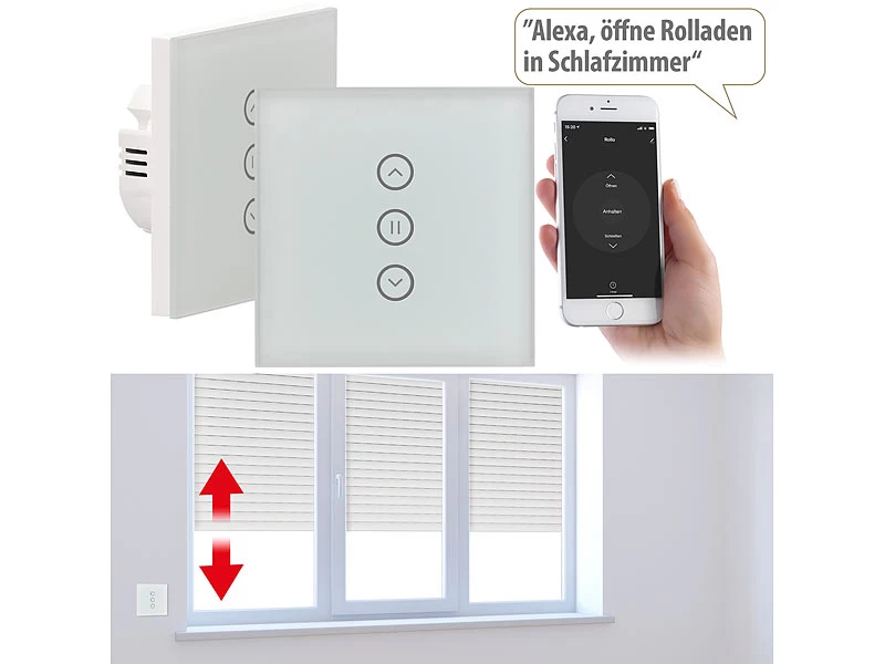 - Kompatibel mit Amazon Alexa und Google Assistant: Rollladen per Amazon Echo, Google Home und kompatiblen Lautsprechern per Sprachbefehl steuerbar