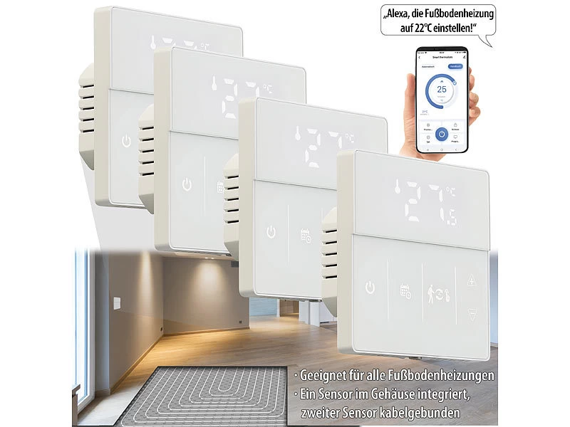 - 4 WLAN-Thermostate je inklusive externem Sensor, Montagematerial und deutscher Anleitung – Smart Home Thermostat – Außerdem relevant oder passend zu: Tablet, Heizkörper