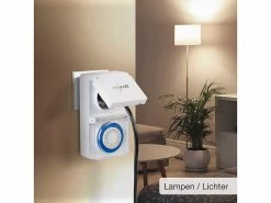 Gartenleuchte, Teichpumpe oder Weihnachtsbeleuchtung: Aktivieren Sie problemlos Geräte im Freien dank Spritzwasserschutz. Nach Ihrem 24-Stunden-Tagesplan gehen angeschlossene Geräte an und auch wieder aus.