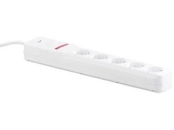- 5 230-Volt-Steckdosen, jeweils einzeln per Fernbedienung schaltbar