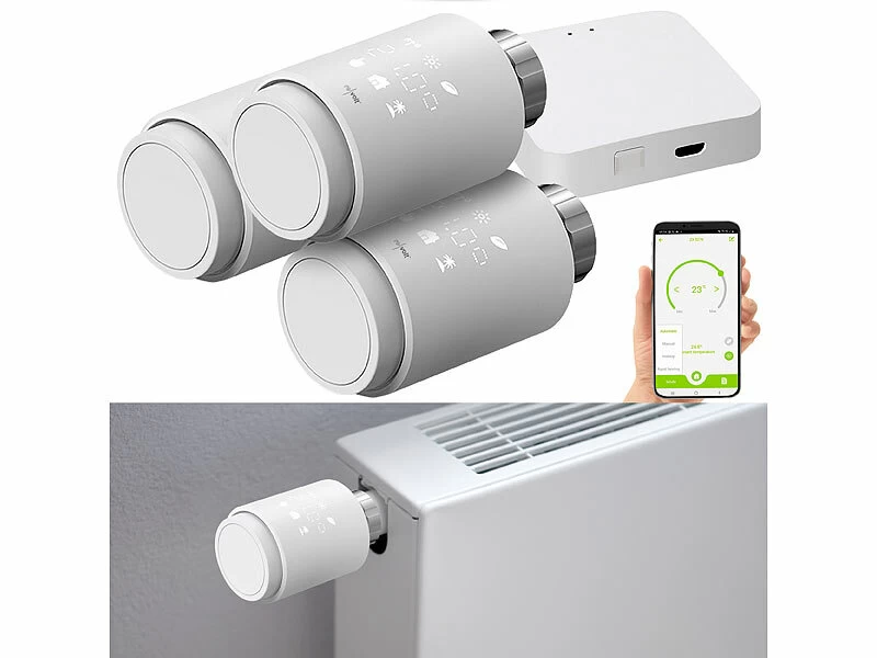 - 3 Heizkörper-Thermostate inklusive 18 Adaptern, WLAN-Gateway und deutscher Anleitung