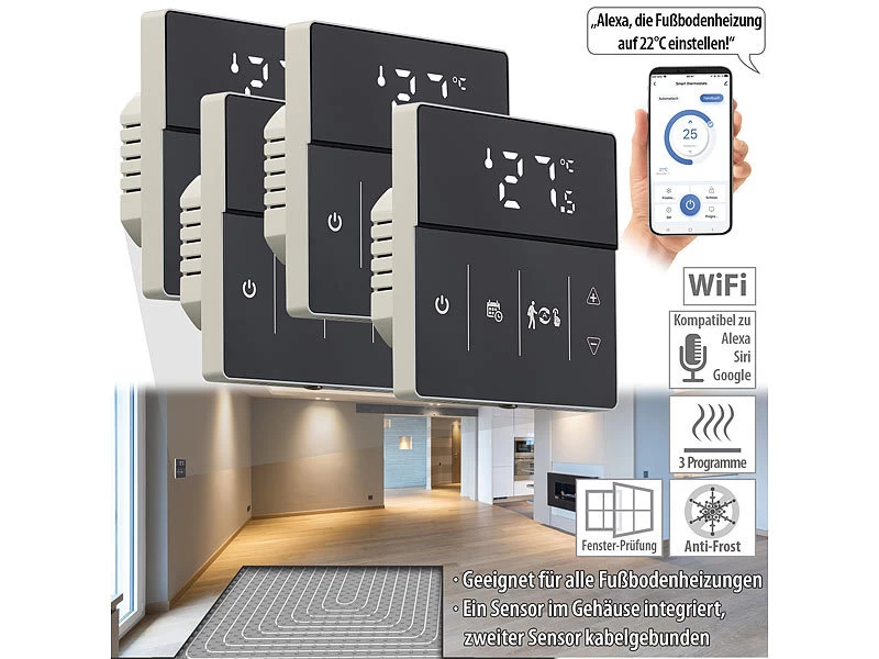 - 4 WLAN-Thermostate je inklusive externem Sensor, Montagematerial und deutscher Anleitung – Thermostat Digital WiFi – Außerdem relevant oder passend zu: Tablet