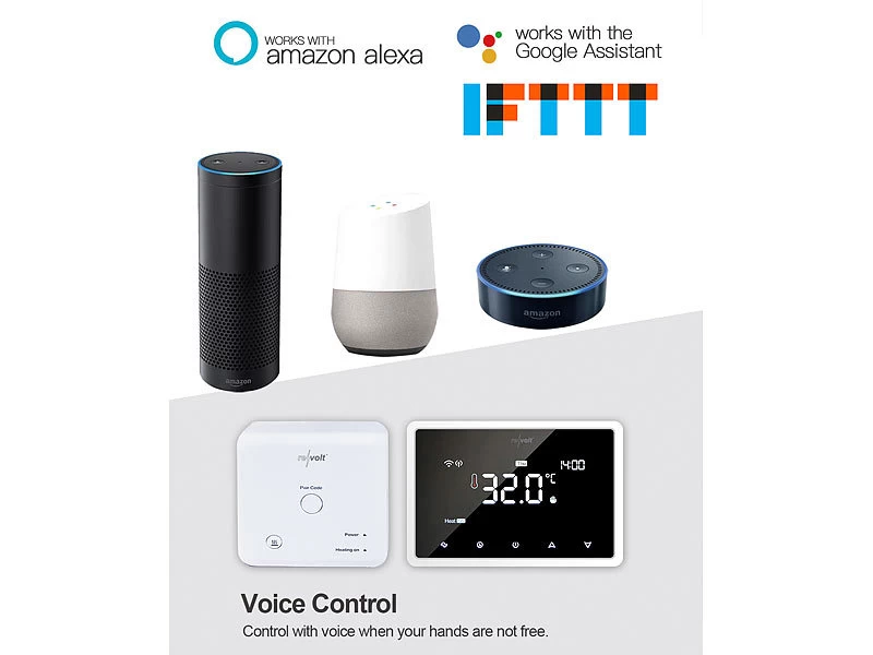 - Kompatibel mit Amazon Alexa und Google Assistant: Thermostat per Amazon Echo, Google Home und kompatiblen Lautsprechern per Sprachbefehl steuern