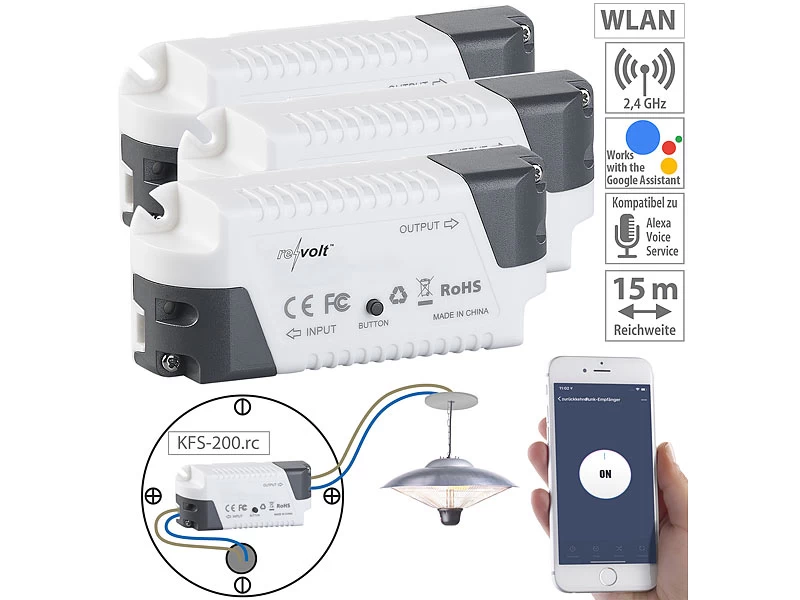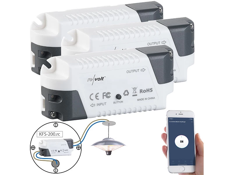 - 3er-Set Funk-Empfänger KFS-200.rc inklusive Klebepad, Schrauben und deutscher Anleitung