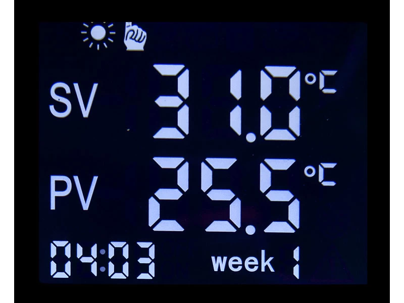 Einfache Handhabung: Ziel-Temperatur, Temperatur-Warnung, Heiz-/Kühlmodus und mehr stellen Sie bequem über 3 Tasten ein. Und auf dem zweizeiligen LED-Display haben Sie alle wichtigen Infos immer im Blick.