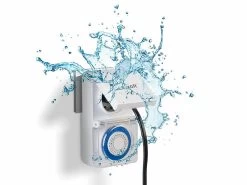 Genial: Die Steckdose ist spritzwassergeschützt – ideal für den Einsatz im Garten!