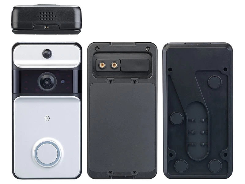 - Video-Türklingel VTK-250 inklusive Funk-Empfänger, Halterung, Montagematerial, USB-Ladekabel, Anschlussmaterial für kabelgebundene Installation und deutscher Anleitung