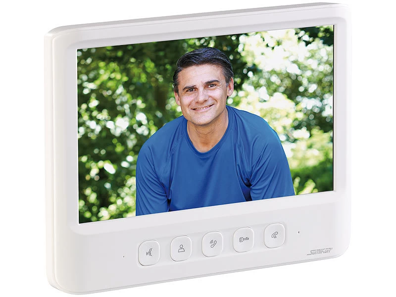 Ihr moderner Tür-Spion: Ein Blick auf den großen Farbmonitor des Empfangsteils genügt und Sie wissen, wer Ihnen einen Besuch abstattet. Und mit der Tür-Öffner-Funktion gewähren Sie Ihren Gästen auf Wunsch Zutritt.