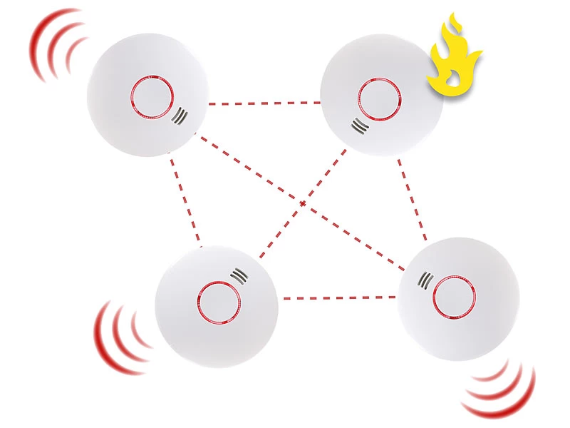 - Per Funk vernetzbar: Bis zu 30 Melder alarmieren im Notfall gleichzeitig