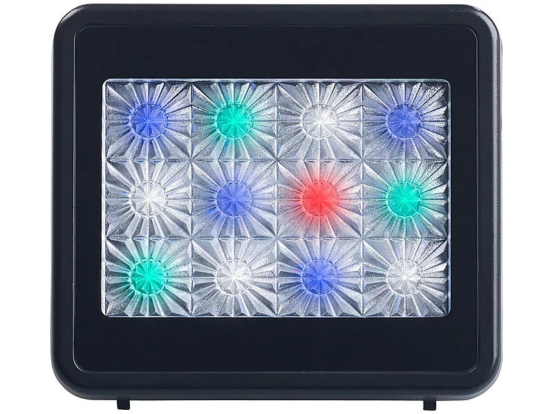 - 12 LEDs: 7x weiß, 2x grün, 2x blau, 1x rot für typisches TV-Licht