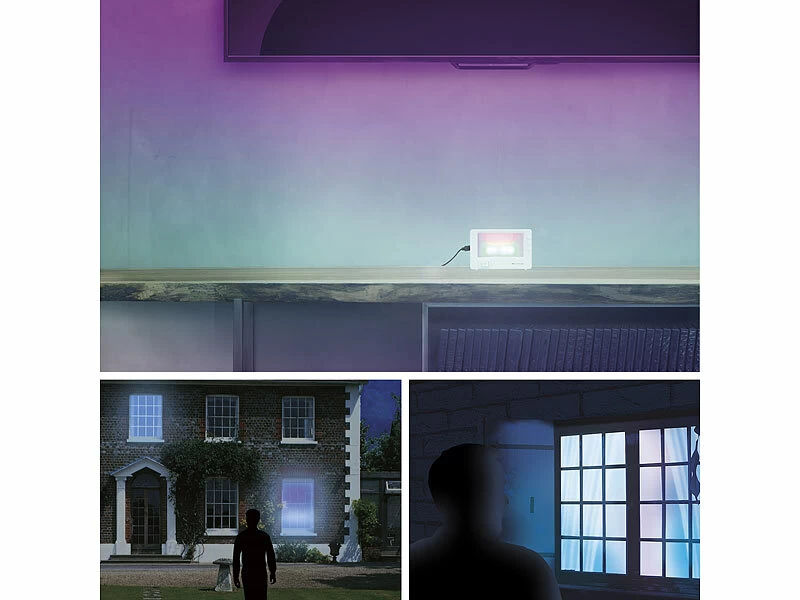 - Kompakte Fernseh-Attrappe: simuliert typisches TV-Flackerlicht