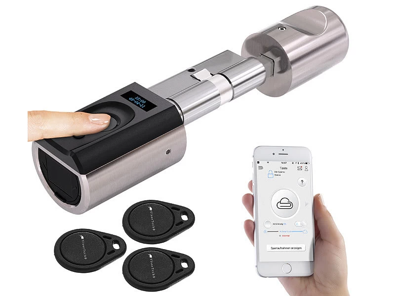 - Tür-Schließzylinder TSZ-700 inklusive 3 Transponder-Schlüssel, Werkzeug, Resetnadel und deutscher Anleitung – Türschloss Fingerprint – Außerdem relevant oder passend zu: Finger, Scanner, Türgriffe, elektrisch, Fingerscan, Türschließer, Elektrisches, Elektronisches, Elektronische Sensor Tansponder