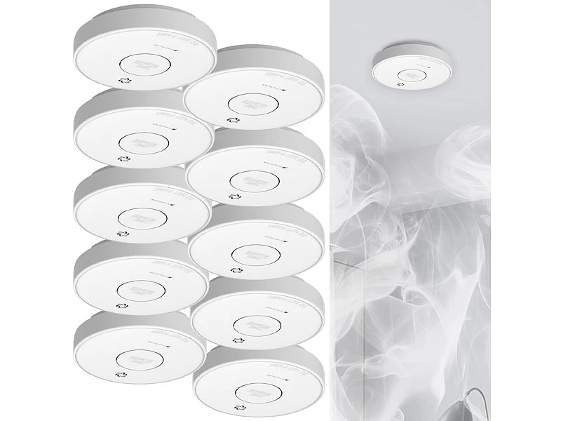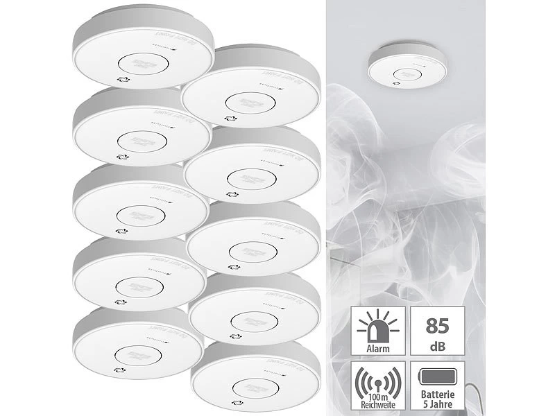 - Drahtlos vernetzbare Rauchwarnmelder RWM-470 im 10er-Set
