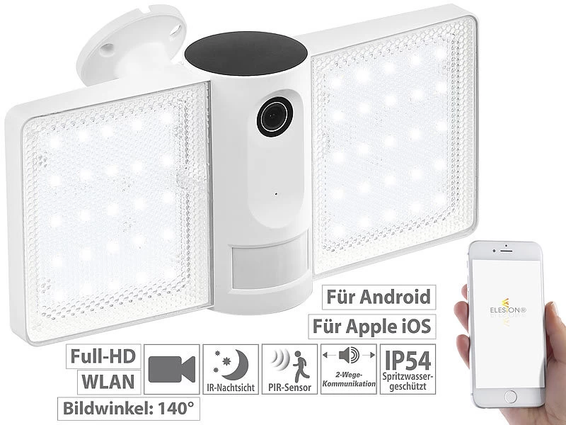 Behalten Sie per App „Elesion“ weltweit die volle Kontrolle: Sehen Sie auf dem Display Ihres Android- oder iOS-Mobilgeräts, was sich vor der Kamera-Linse tut. Durch die Bewegungs-Erkennung informiert Sie die Kamera automatisch über jede Aktivität!