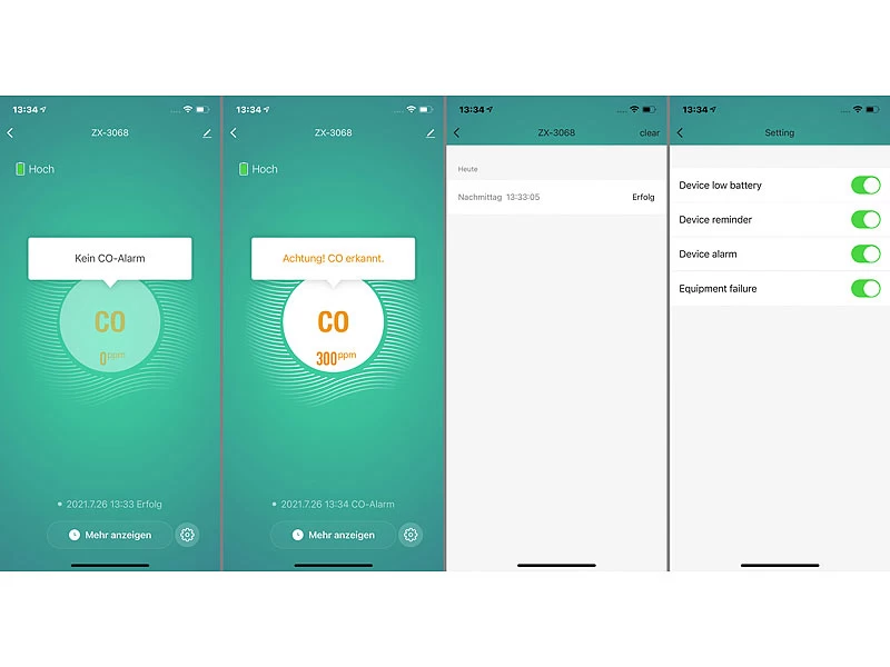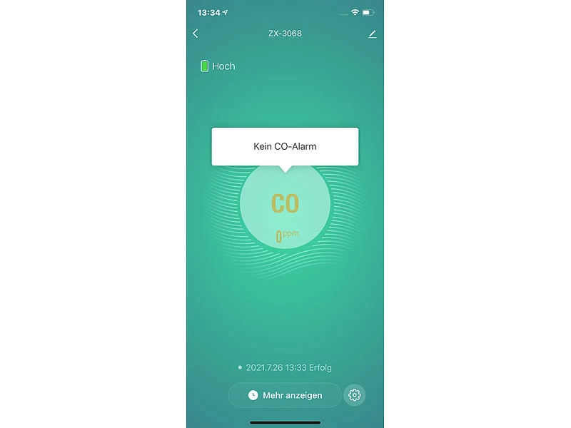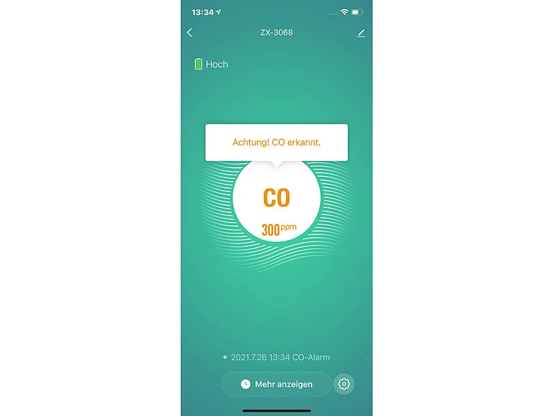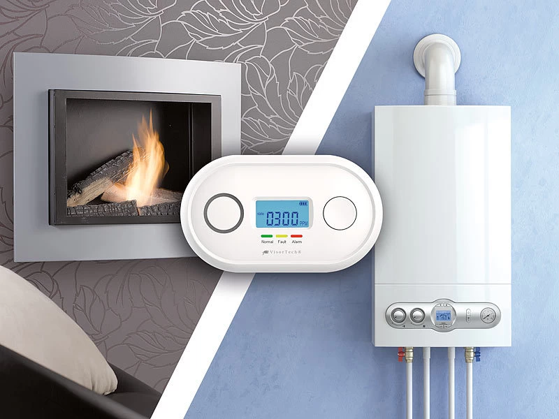 - Ständige Messung des CO-Gehalts in der Raumlauft, warnt vor giftigem CO
