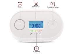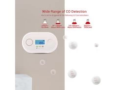 Auf dem übersichtlichen LCD-Display sehen Sie auf einen Blick die aktuelle CO-Konzentration sowie die Raumtemperatur und den Batteriestand. Für zusätzliche Sicherheit sorgen die Selbsttest-Taste, 3 Status-LEDs sowie die akustische Warnung bei schwacher Batterie.