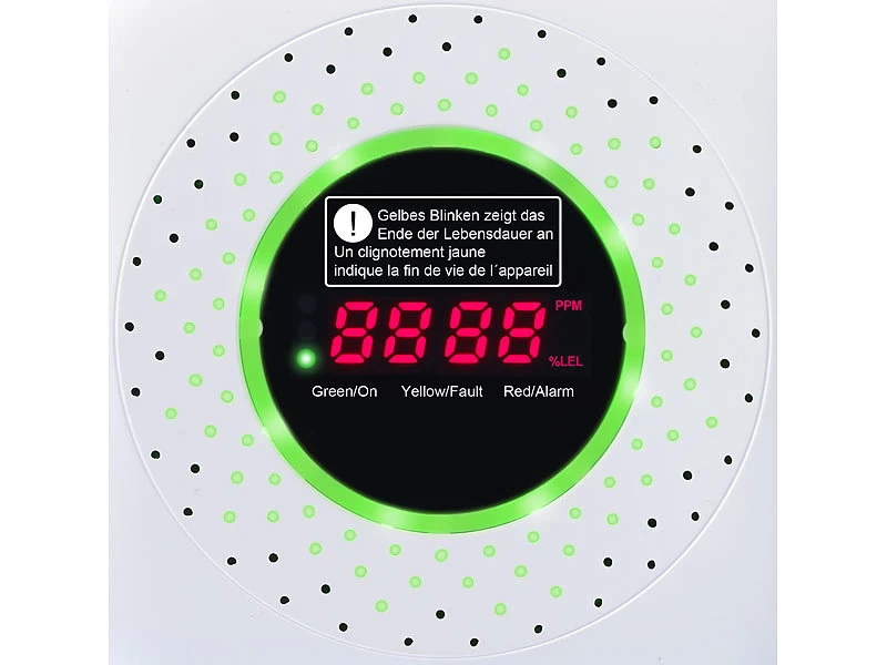 - LED-Display zur Anzeige der Gas-Konzentration in der Raumluft
