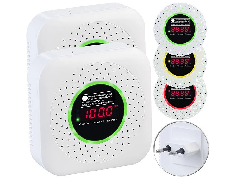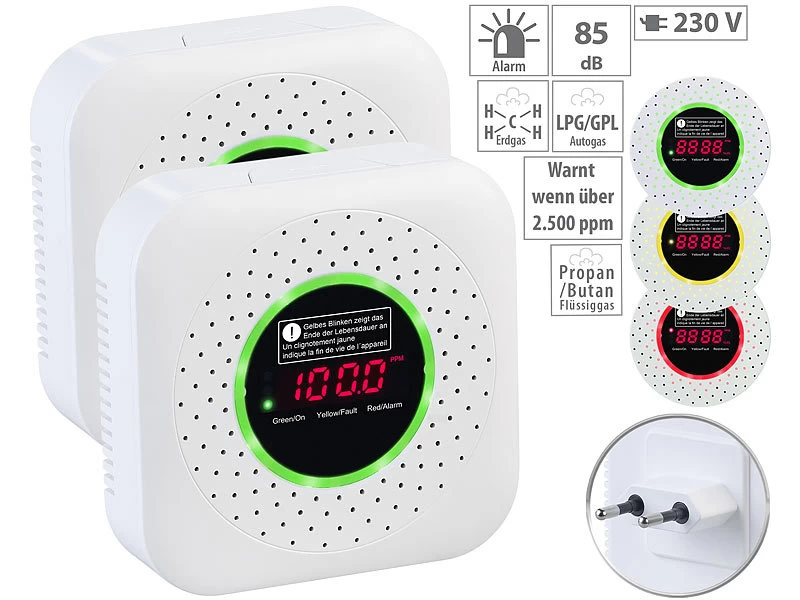 - 2er-Set Steckdosen-Multi-Gasmelder inklusive deutscher Anleitung – Gasmeldeanlage – AuĂźerdem relevant oder passend zu: Reise, Kocher, Reisen, Camping, CO Melder, Gaskocher, Gasflasche, Autogarage, Auto Heizung