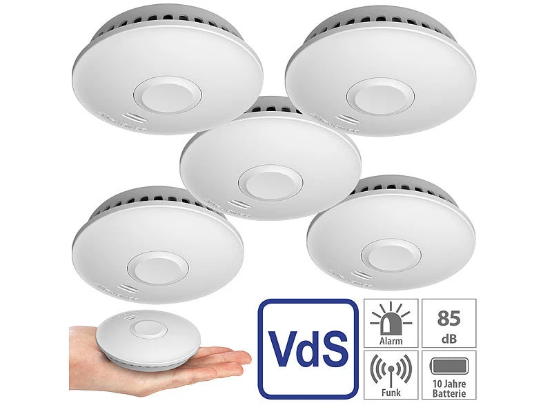 - 5 Rauchmelder RWM-700.vds inklusive Montagematerial und deutscher Anleitung – Funk-Rauchmelder, VdS-zertifiziert – Außerdem relevant oder passend zu: vernetzt, Alarmsysteme