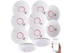 - 10 Hitze- und Rauchwarnmelder RWM-200.app je inklusive 2 Batterien, Montagezubehör und deutscher Anleitung