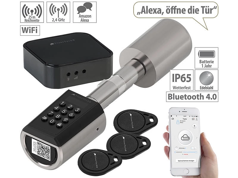 - Öffnen der Tür per Zahlencode oder App-Steuerung