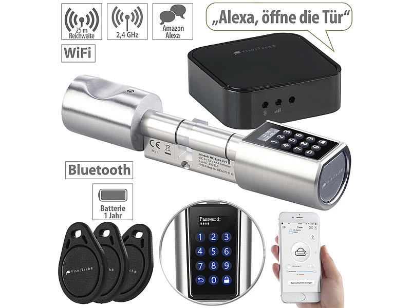 - Öffnen der Tür per Zahlencode oder App-Steuerung